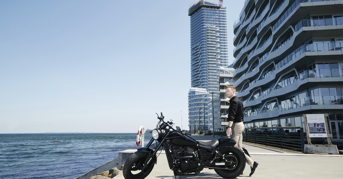 Vi møder Mathias Kehlet ved Bassin 7 på Aarhus Ø på en mandag eftermiddag, hvor solen skinner fra en skyfri himmel. Han kører forbi det pulserende byliv og tiltrækker sig beundrende blikke på sin sorte motorcykel – en totalt renoveret og specialombygget Suzuki, der stråler i den skarpe forårssol. Han bestiller en cola. Smalltalker med folk i de små butikker og cafeer. Drikker en kop kaffe. Og glæder sig over, at han om ganske kort tid kan kalde dette unge, levende miljø for sit hjem, når han flytter ind i Aarhus’ nye vartegn: Lighthouse.