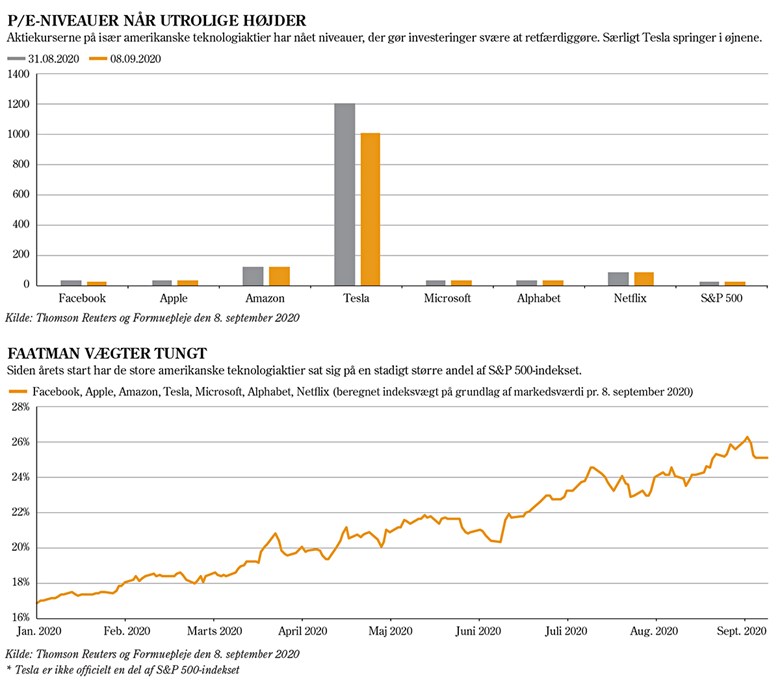 Helt sikker kan man dog ikke være. Som det vil være mange bekendt, er det ikke hele aktiemarkedet, der har lidt under Covid-19. De amerikanske tech-aktier er den klareste undtagelse, hvor selskaber som Amazon, Apple og Tesla indtil begyndelsen af september steg til nogle ekstreme niveauer, hvor aktiekursen langt oversteg, hvad indtjeningen i de pågældende selskaber kunne retfærdiggøre.