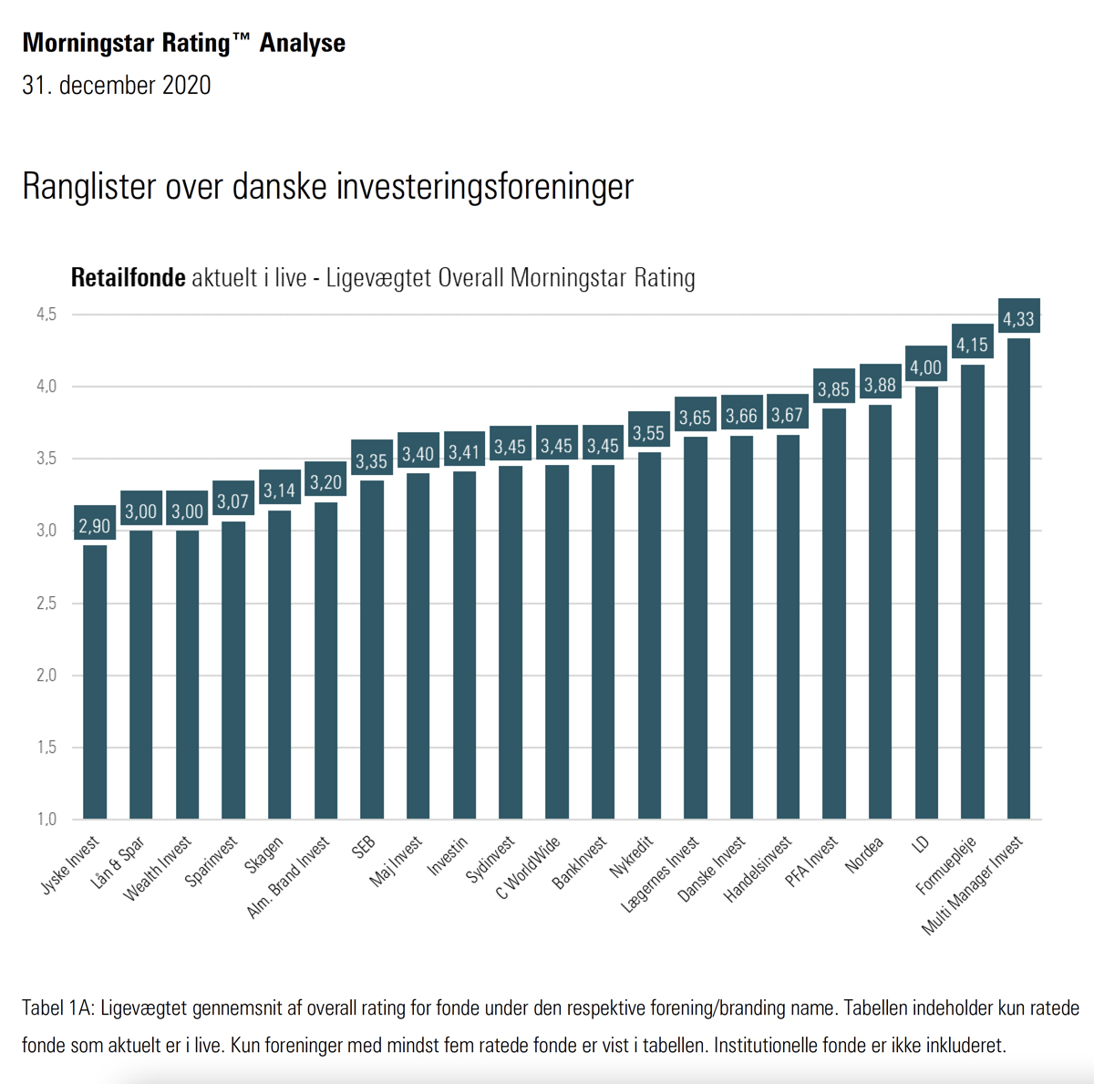 ”Vores ambition er fortsat at ligge med helt i toppen, og vi har relativt pæne forventninger til 2021, hvor verdensøkonomien skal finde sit fodfæste efter COVID-19-pandemien. Og med den ekspansive penge- og finanspolitik, der bliver ført verden over, har vi en forventning om, at rammebetingelserne for investeringer er gode. På den baggrund tror vi på 2021 som et godt investeringsår, hvor vi kan fortsætte med at ligge blandt de bedste, når Morningstar rangerer de danske investeringsforeninger,” slutter Søren Astrup.