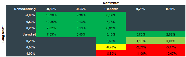 Anm.: * Kort rente er den 2 årige rente og den lange rente er den 10 årige rente (begge swap-renter)