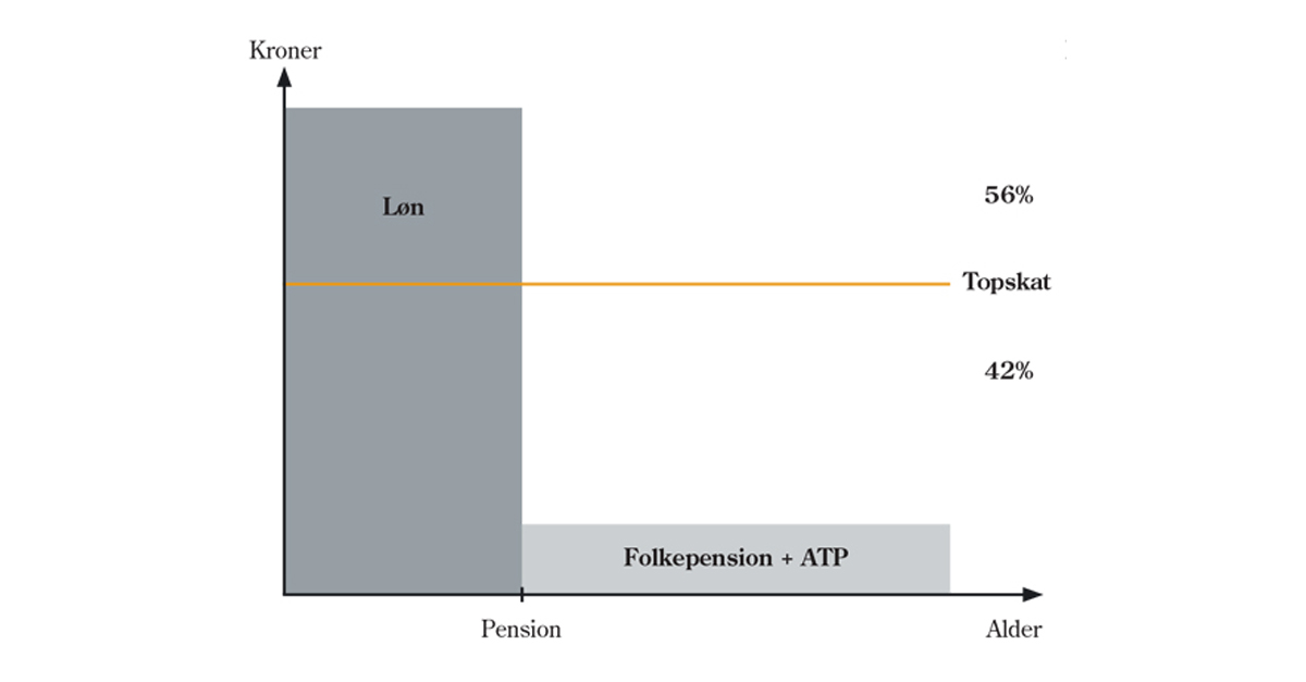 Når Anna som 69-årig kan gå på pension, vil hun have sparet så meget op på sine pensionsordninger, at hun resten af livet kan se frem til en personlig indkomst helt op til topskattegrænsen.
