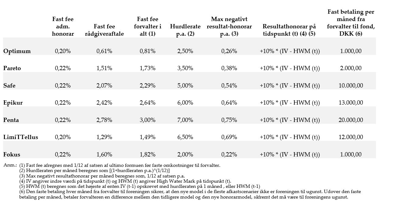 Den nye honorarmodel i foreningerne Optimum, Pareto, Safe, Epikur, Penta, Fokus og LimiTTellus betyder konkret: